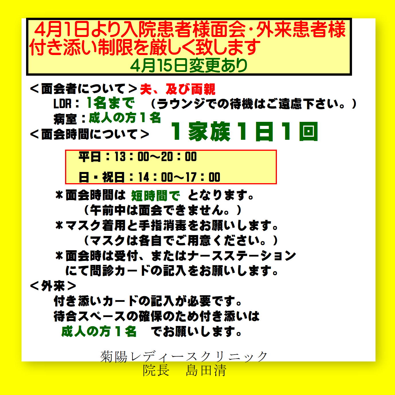 - 新型コロナウイルス感染拡大をうけて、当院におきましても院内感染防止の為、 現在実施しております入館制...
